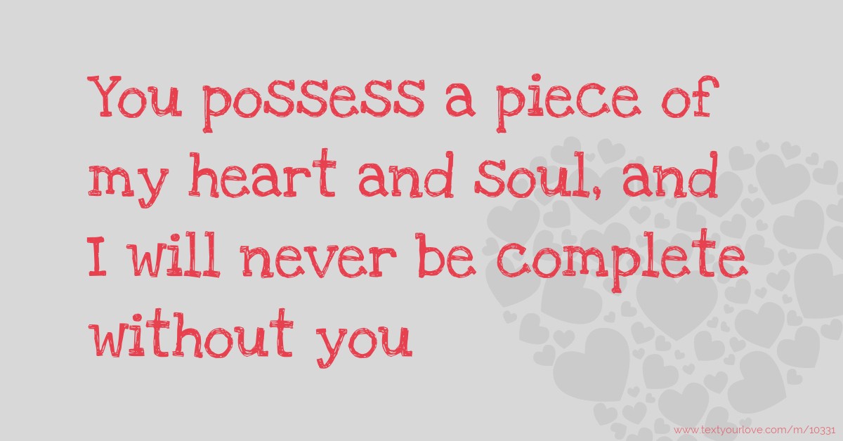 You possess a piece of my heart and soul, and I will never be complete without you.