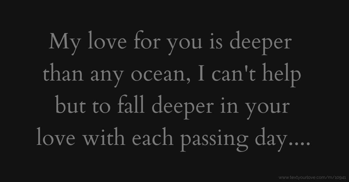 My love for you is deeper than any ocean, I can't help but to fall deeper in your love with each passing day....