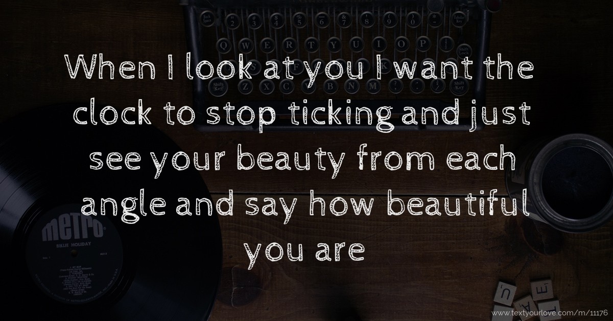 When I look at you I want the clock to stop ticking and just see your beauty from each angle and say how beautiful you are.