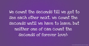 We count the seconds till we get to see each other next, we count the seconds until we have to leave, but neither one of can count the seconds of forever love!<