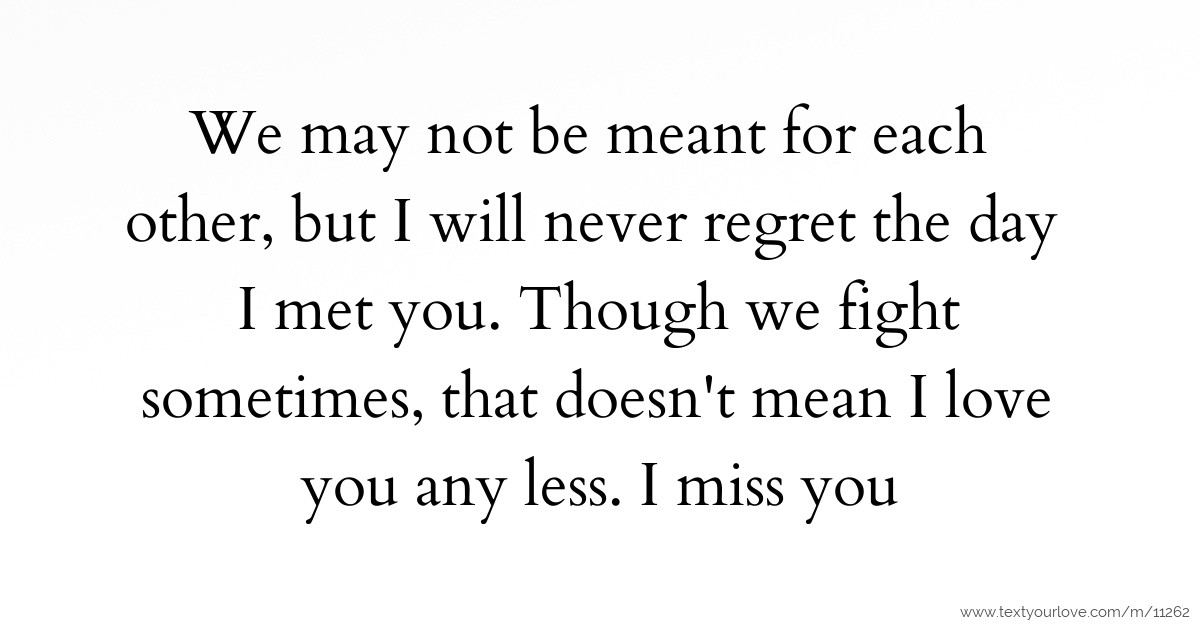 We may not be meant for each other, but I will never regret the day I met you. Though we fight sometimes, that doesn't mean I love you any less. I miss you.