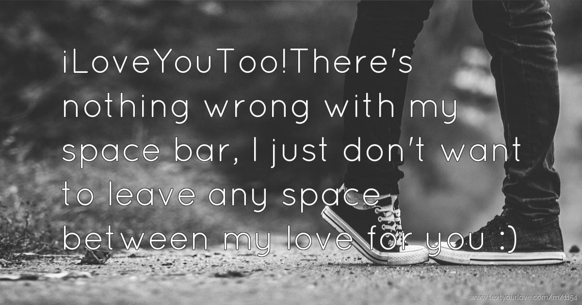 iLoveYouToo!There's nothing wrong with my space bar, I just don't want to leave any space between my love for you :)
