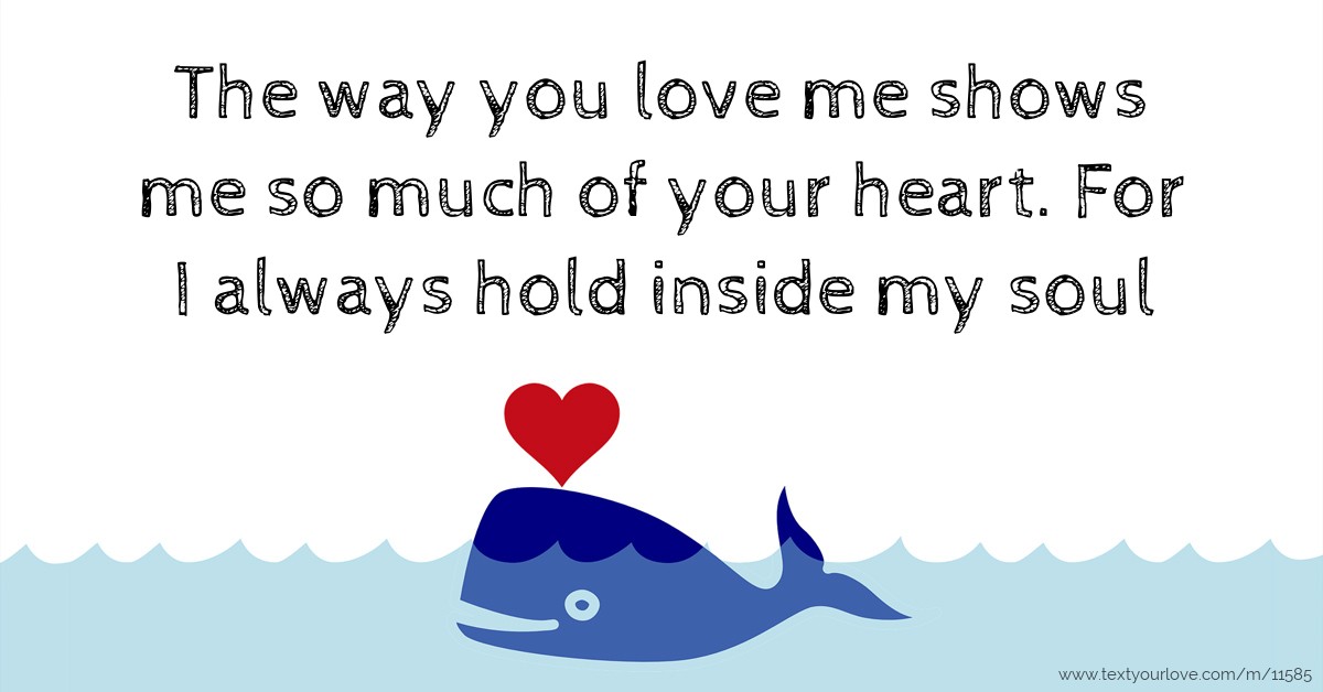 The way you love me shows me so much of your heart. For I always hold inside my soul.