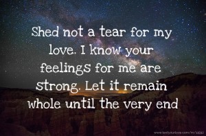 Shed not a tear for my love. I know your feelings for me are strong. Let it remain whole until the very end.