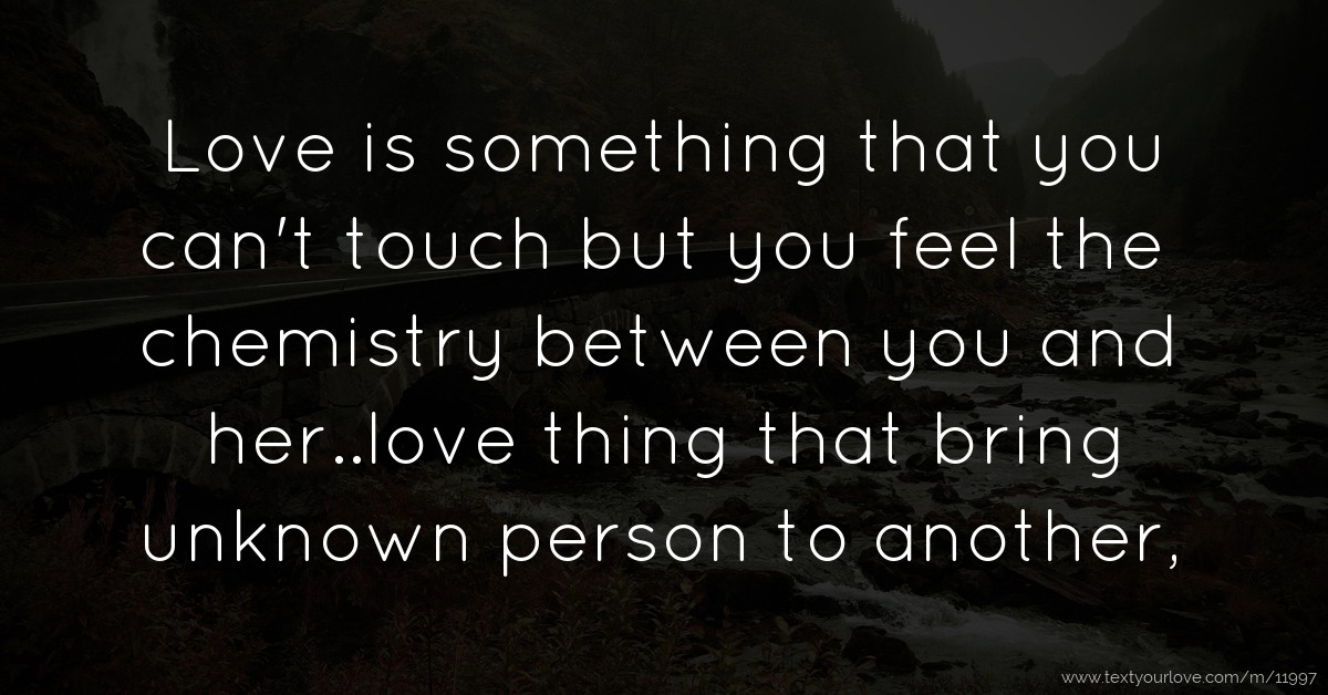 Love is something that you can't touch but you feel the chemistry between you and her..love thing that bring unknown person to another,