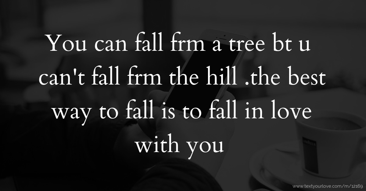 You can fall frm a tree bt u can't fall frm the hill .the best way to fall is to fall in love with you