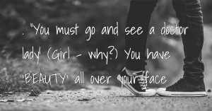 . “You must go and see a doctor lady! (Girl – why?) You have ‘BEAUTY’ all over your face