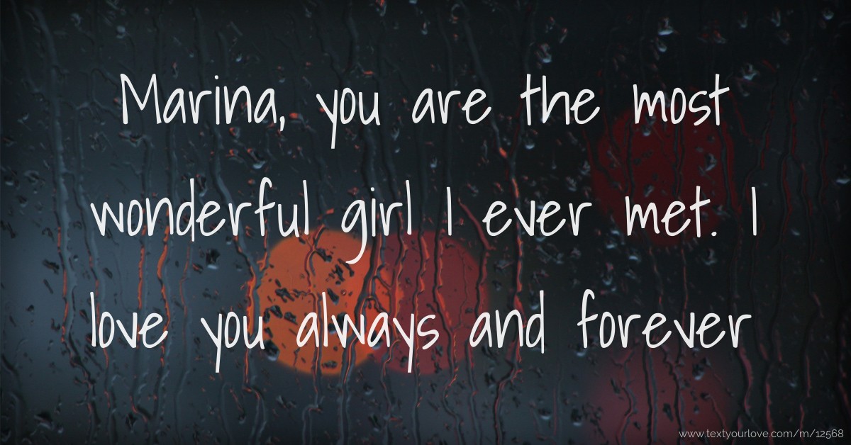 Marina, you are the most wonderful girl I ever met. I love you always and forever.