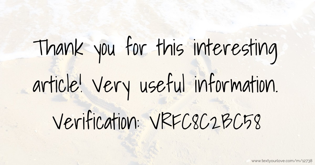 Next text message: Thank you for this interesting article! Very useful information. Verification: VRFD5F2C859"