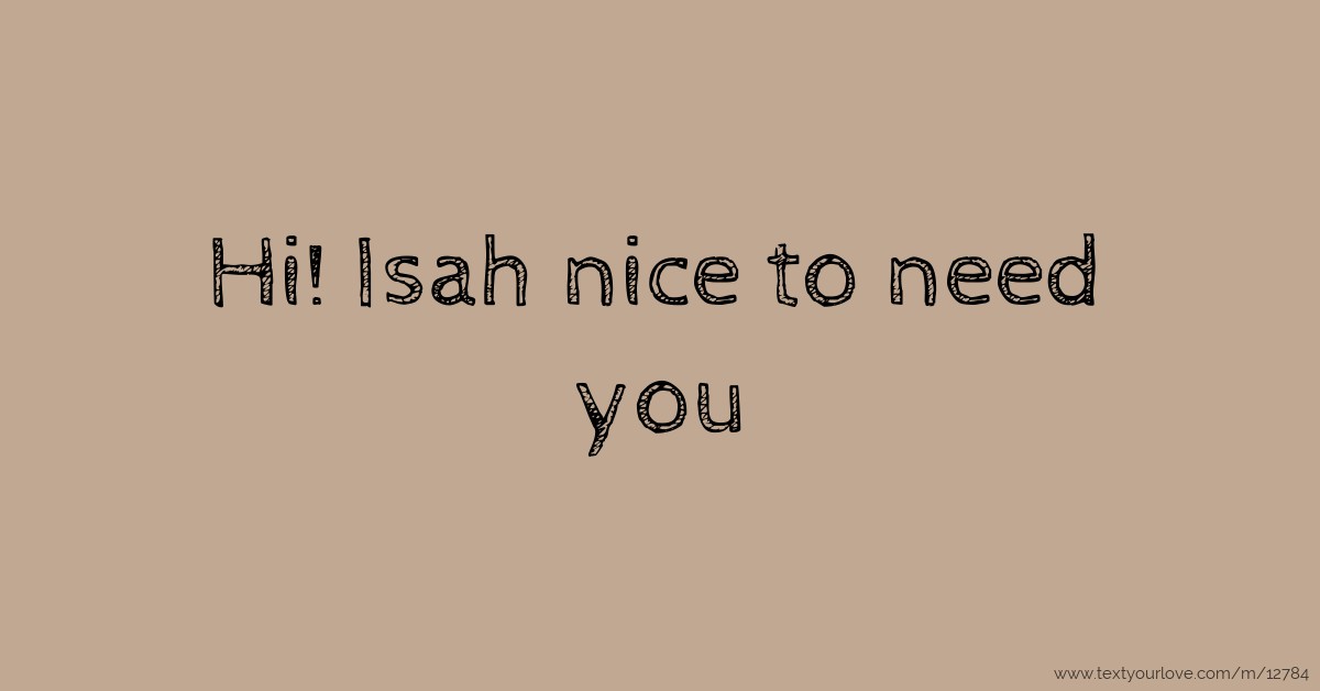 Hi! Isah nice to need you