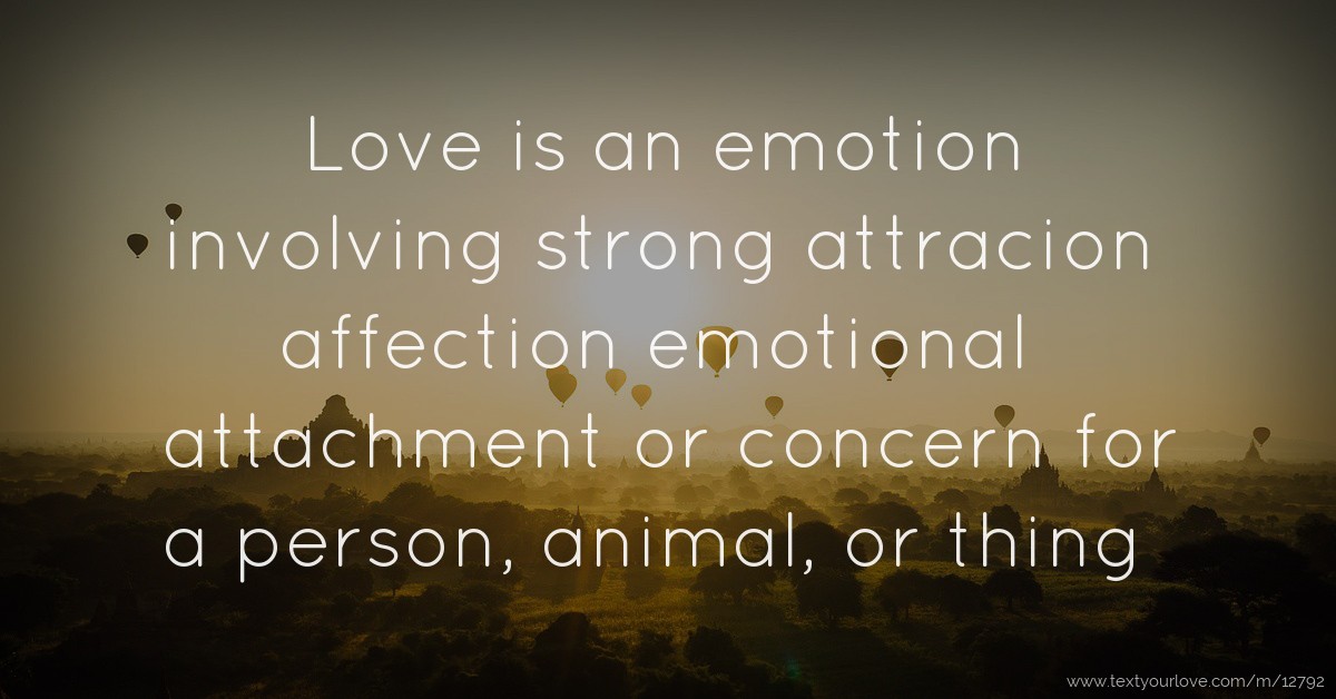 Love is an emotion involving strong attracion affection emotional attachment or concern for a person, animal, or thing