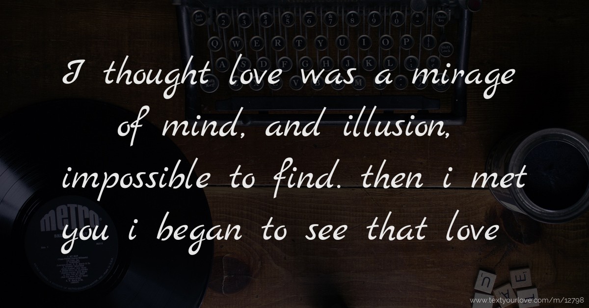 I thought love was a mirage of mind, and illusion, impossible to find. then i met you i began to see that love.