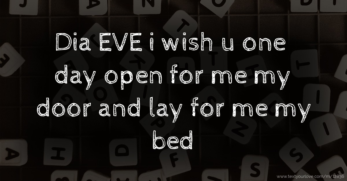 Next text message: Dia EVE i wish u one day open for me my door and lay for me my bed"