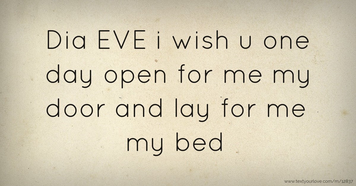 Previous text message: "Dia EVE i wish u one day open for me my door and lay for me my bed"