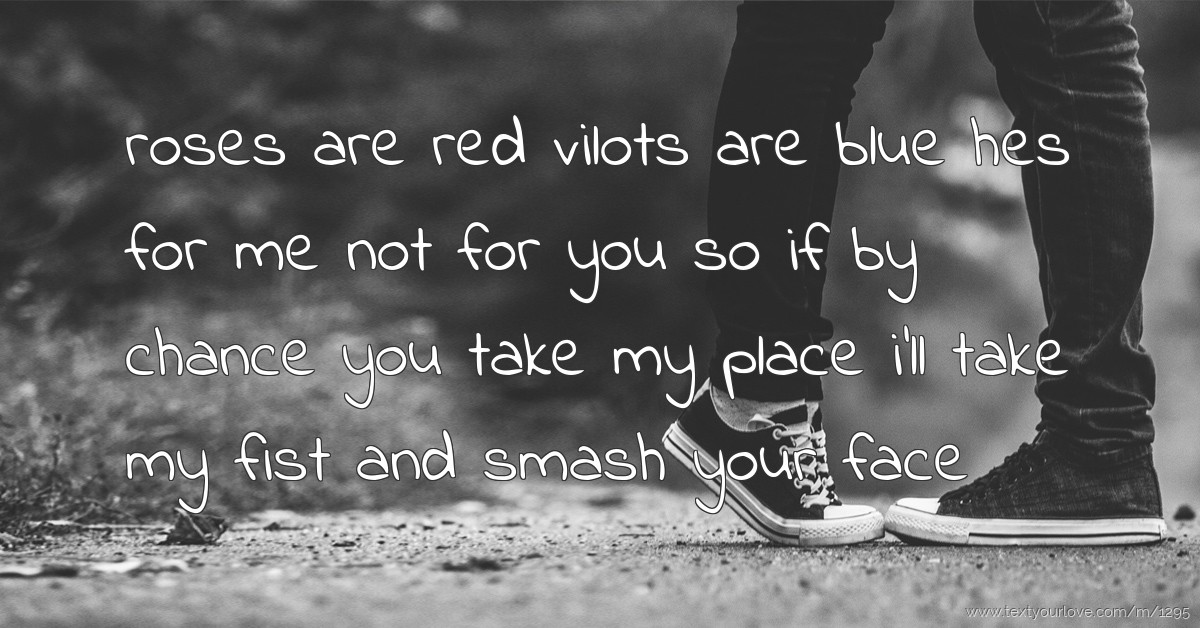 roses are red vilots are blue hes for me not for you so if by chance you take my place i'll take my fist and smash your face