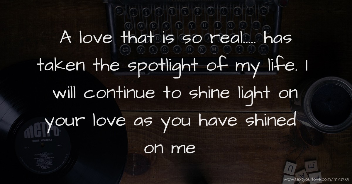 A love that is so real..... has taken the spotlight of my life. I will continue to shine light on your love as you have shined on me.