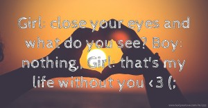 This one backfired on me... this is what happend me:Close your eyes and what do you see? bf: Your beautiful face <3