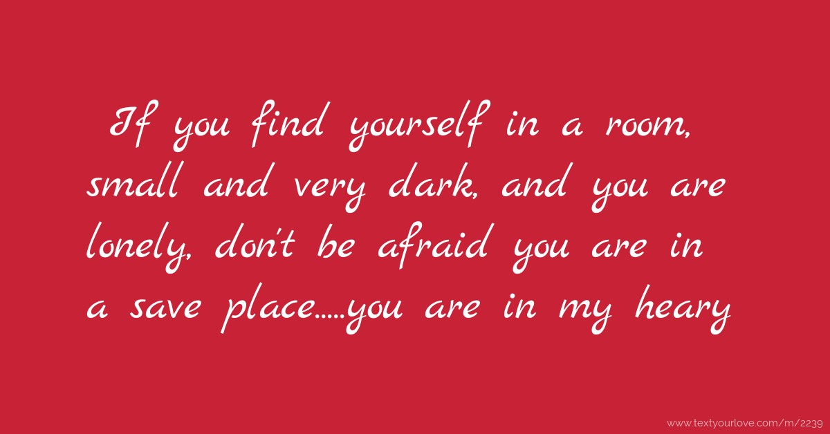 If you find yourself in a room, small and very dark, and you are lonely, don't be afraid you are in a save place.....you are in my heary