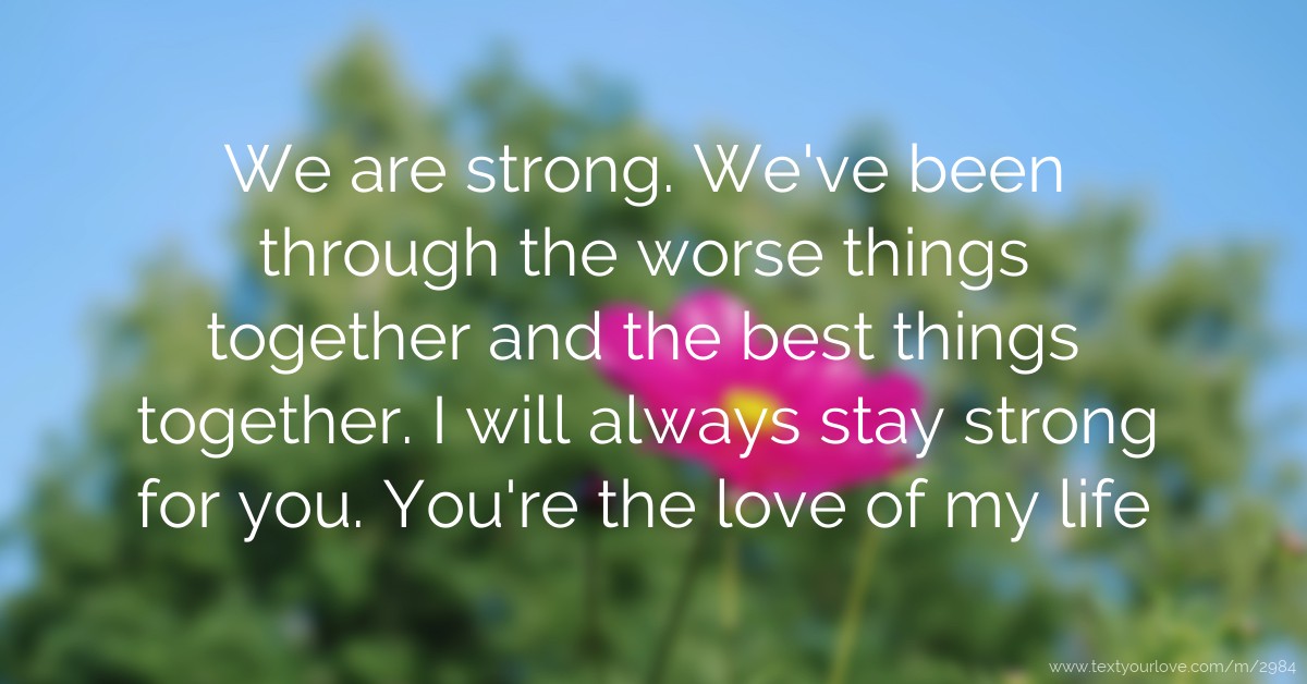 We are strong. We've been through the worse things together and the best things together. I will always stay strong for you. You're the love of my life.