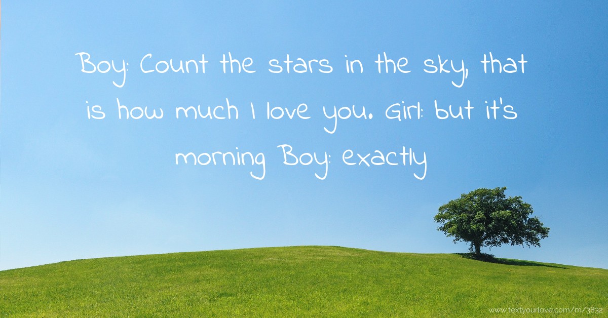 Boy: Count the stars in the sky, that is how much I love you. Girl: but it's morning Boy: exactly