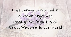 Last census conducted in heaven,an Angel was missing.That Angel is you! Dorcas.Welcome to our world!
