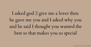 I asked god 2 give me a lover then he gave me you and I asked why you and he said I thought you wanted the best so that makes you so special