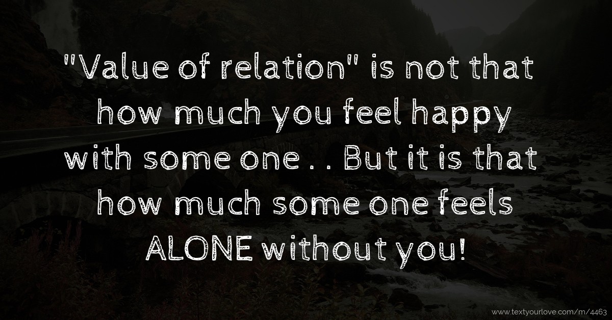 "Value of relation" is not that how much you feel happy with some one . . But it is that how much some one feels ALONE without you!