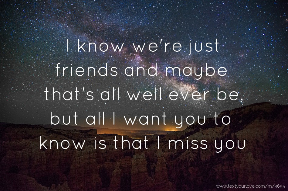 I know we're just friends and maybe that's all well ever be, but all I want you to know is that I miss you