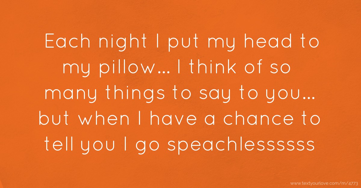 Each night I put my head to my pillow... I think of so many things to say to you... but when I have a chance to tell you I go speachlessssss