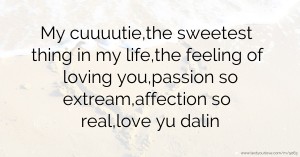 My cuuuutie,the sweetest thing in my life,the feeling of loving you,passion so extream,affection so real,love yu dalin.