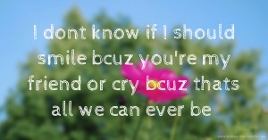 I dont know if I should smile bcuz you're my friend or cry bcuz thats all we can ever be.