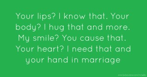 Your lips? I know that. Your body? I hug that and more. My smile? You cause that. Your heart? I need that and your hand in marriage.