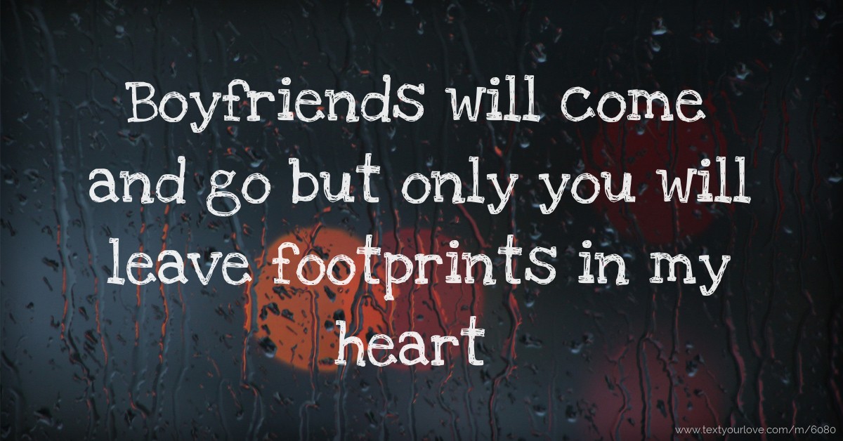 Boyfriends will come and go but only you will leave footprints in my heart.