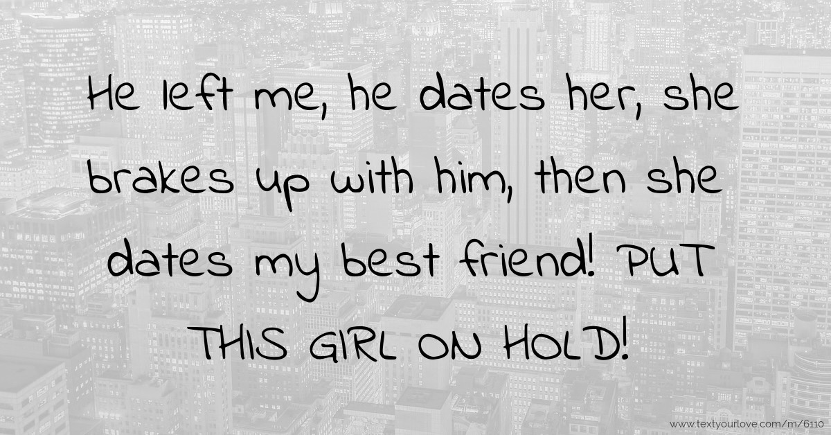 He left me, he dates her, she brakes up with him, then she dates my best friend! PUT THIS GIRL ON HOLD!