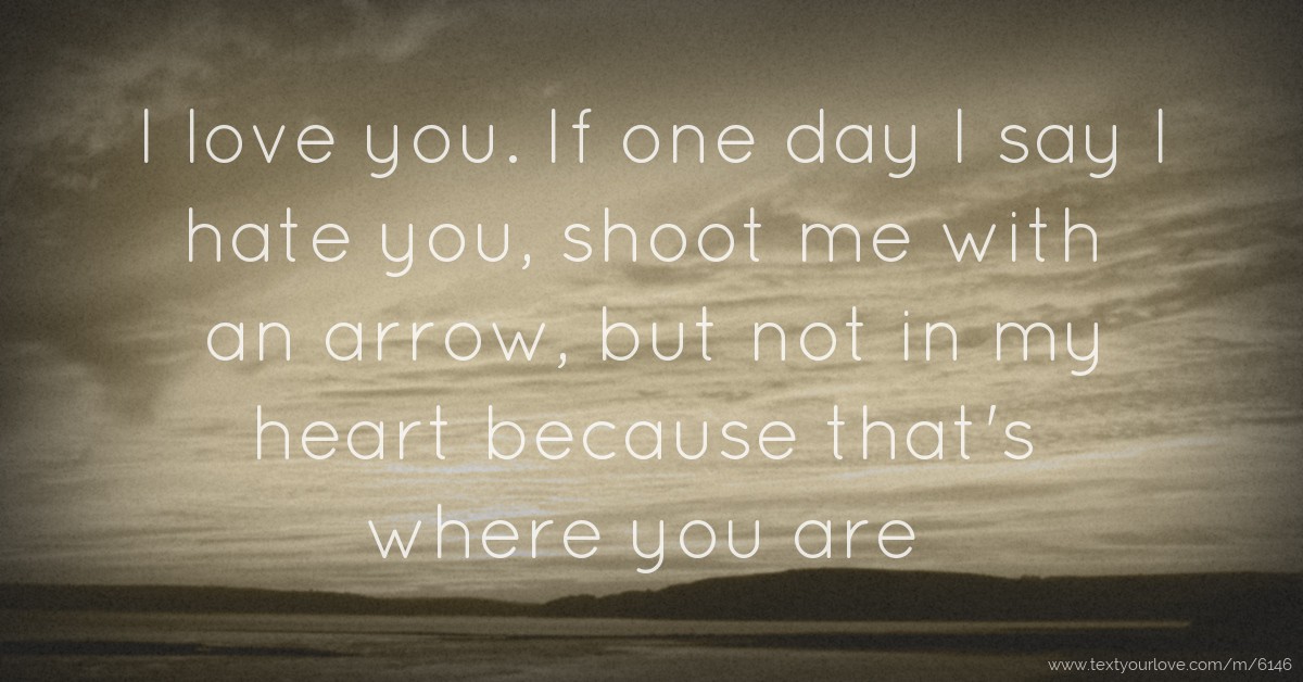 I love you. If one day I say I hate you, shoot me with an arrow, but not in my heart because that's where you are.