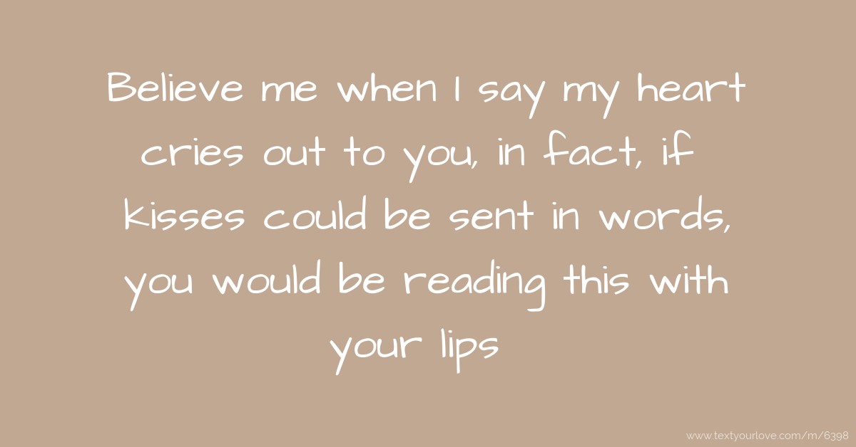 Believe me when I say my heart cries out to you, in fact, if kisses could be sent in words, you would be reading this with your lips.