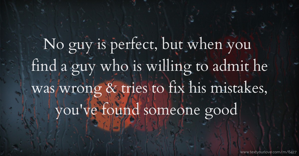 No guy is perfect, but when you find a guy who is willing to admit he was wrong & tries to fix his mistakes, you've found someone good.