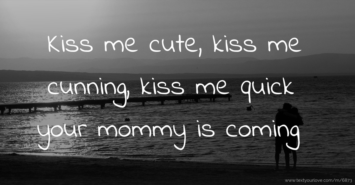 Kiss me cute, kiss me cunning, kiss me quick your mommy is coming.