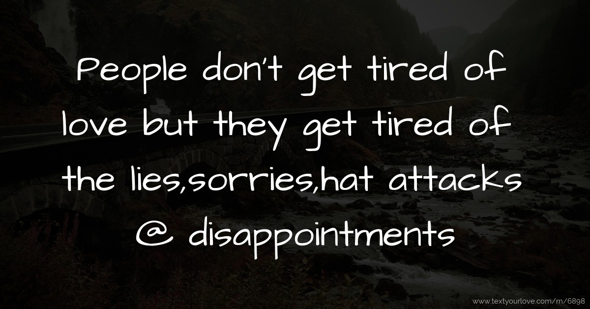 People don't get tired of love but they get tired of the lies,sorries,hat attacks @ disappointments.