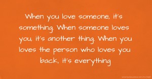 When you love someone, it's something. When someone loves you, it's another thing. When you loves the person who loves you back, it's everything.