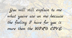 You will still explain to me what you've use on me because the feeling I have for you is more then the WORD LOVE.