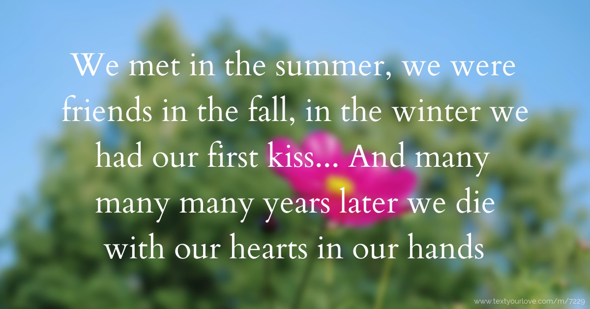 We met in the summer, we were friends in the fall, in the winter we had our first kiss... And many many many years later we die with our hearts in our hands