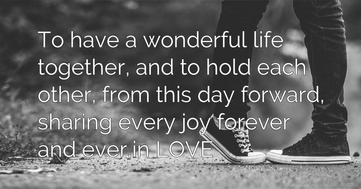 To have a wonderful life together, and to hold each other, from this day forward, sharing every joy forever and ever,in LOVE