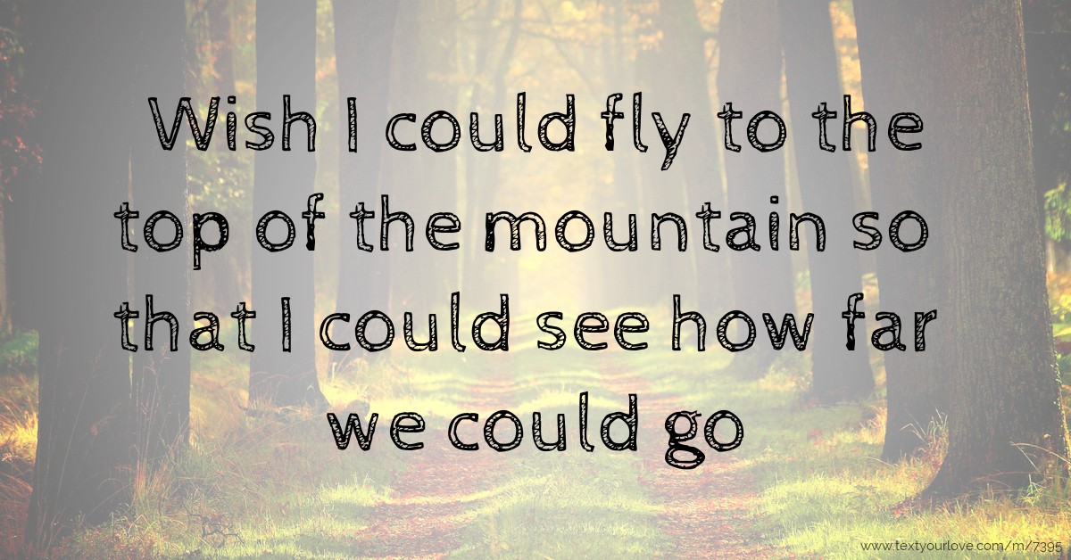 Wish I could fly to the top of the mountain so that I could see how far we could go.