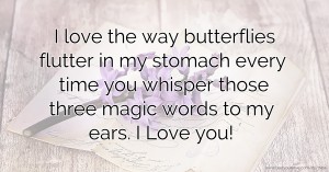 I love the way butterflies flutter in my stomach every time you whisper those three magic words to my ears. I Love you!