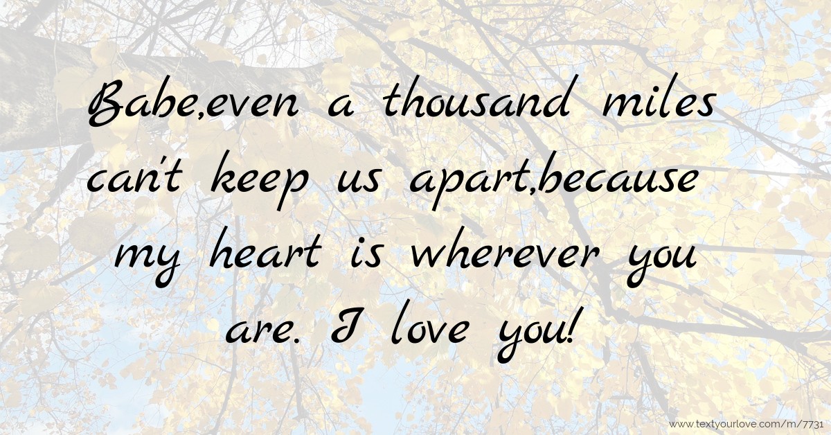 Babe,even a thousand miles can't keep us apart,because my heart is wherever you are. I love you!