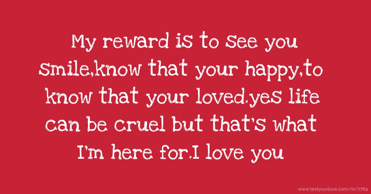 My reward is to see you smile,know that your happy,to know that your loved.yes life can be cruel but that's what I'm here for.I love you
