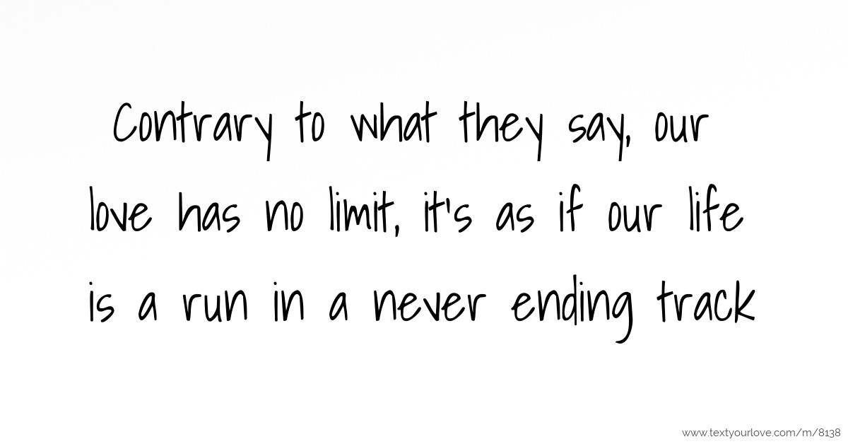 Contrary to what they say, our love has no limit, it's as if our life is a run in a never ending track.