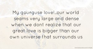 My gourguse love!..our world seams very large and dense when we dont realize that our great love is bigger than our own universe that surrounds us.