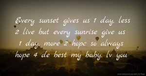 Every sunset gives us 1 day, less 2 live but every sunrise give us 1 day, more 2 hope so always hope 4 de best my baby. lv you